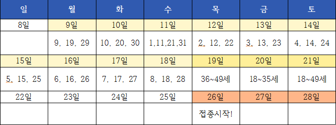 백신 10부제는 생년월일 중 일! 태어난 날의 끝자리 입니다.