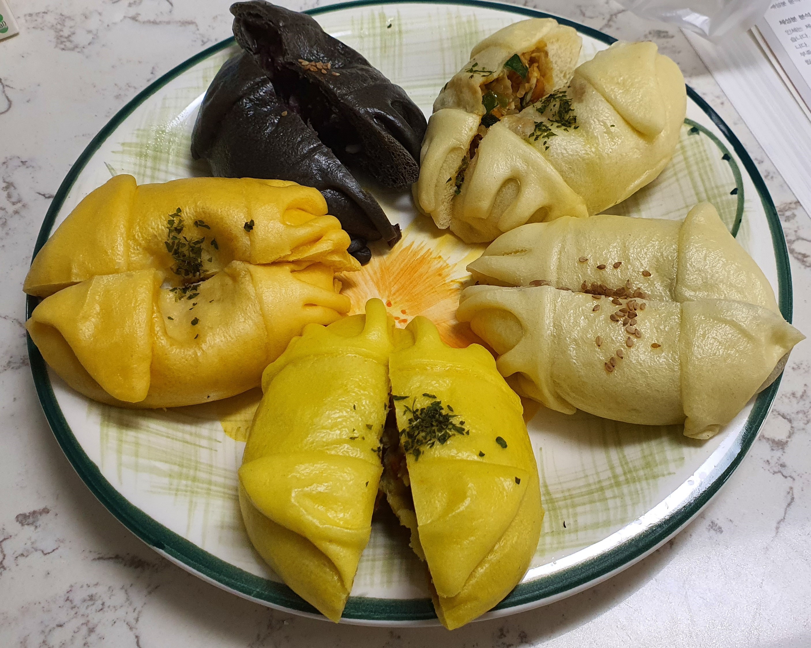 나는 매콤한 야채, 먹물, 치즈가 맛있었다.